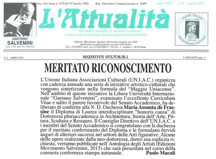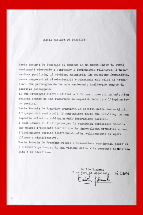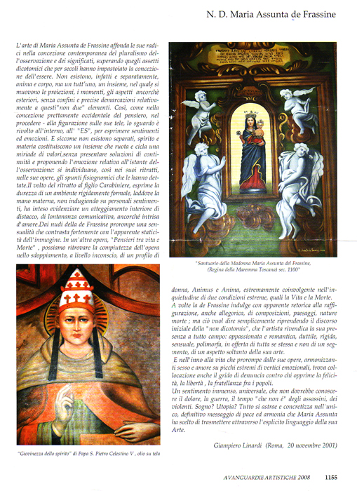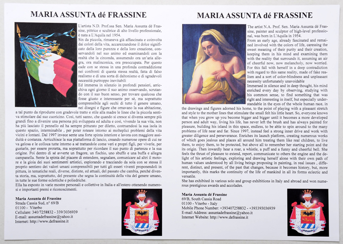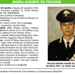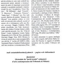 2016 - MILANO - CASA EDITRICE IL "QUADRATO" DI MILANO DA: " LUCIO FONTANA AL GIUBILEO DI PAPA FRANCESCO 2016" (AUTORI CONTEMPORANEI DELL'EPOCA ATTUALE) A CURA DEL DOTT. GIORGIO FALOSSI (MI). CRITICA D'ARTE ALL'ARTISTA: "MARIA ASSUNTA dé FRASSINE" DEL DOTT. GIORGIO FALOSSI (CRITICO D'ARTE) DELLA CASA EDITRICE IL "QUADRATO" DI MILANO 2016.