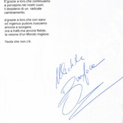 Ci prendiamo le mani in un intimo colloquio stanchi di portare la vita da soli. L'armonia solenne della natura cancela il mondo in lacrime