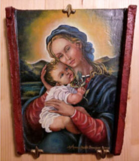 Madonna della Pace pittura ad olio su tegola romano dell’Artista N.D. Maria Assunta dè Frassine